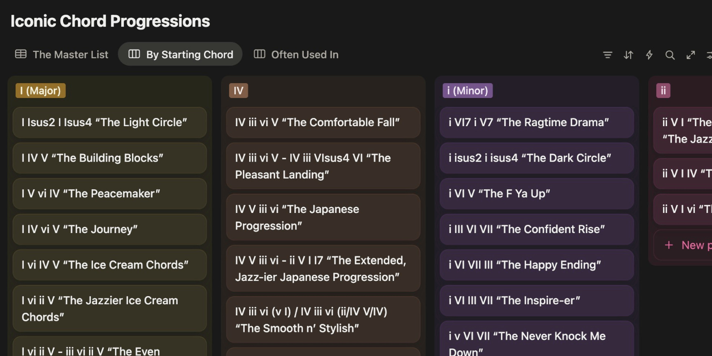 I built this database to help me catalog all my favorite progressions, and the emotions inside them.