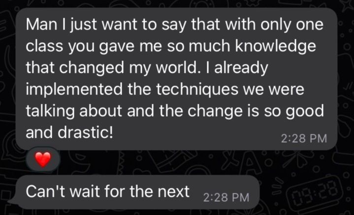 “Working with you was the missing piece. I now have more fun, and feel confident in my production & career direction. This was more impactful than my entire college experience, and a hell of a lot cheaper. I gained more momentum in 2 months than in my previous years.”
